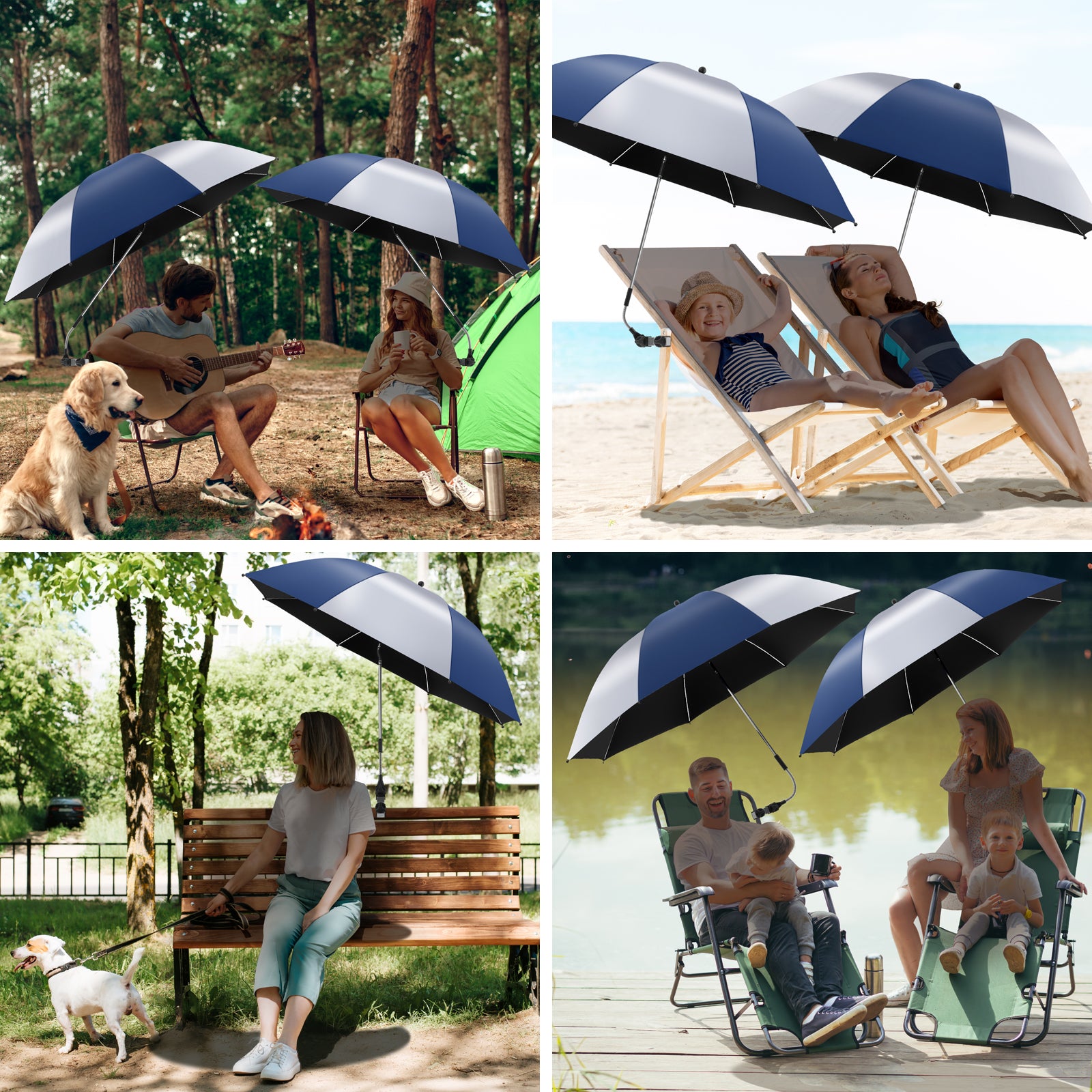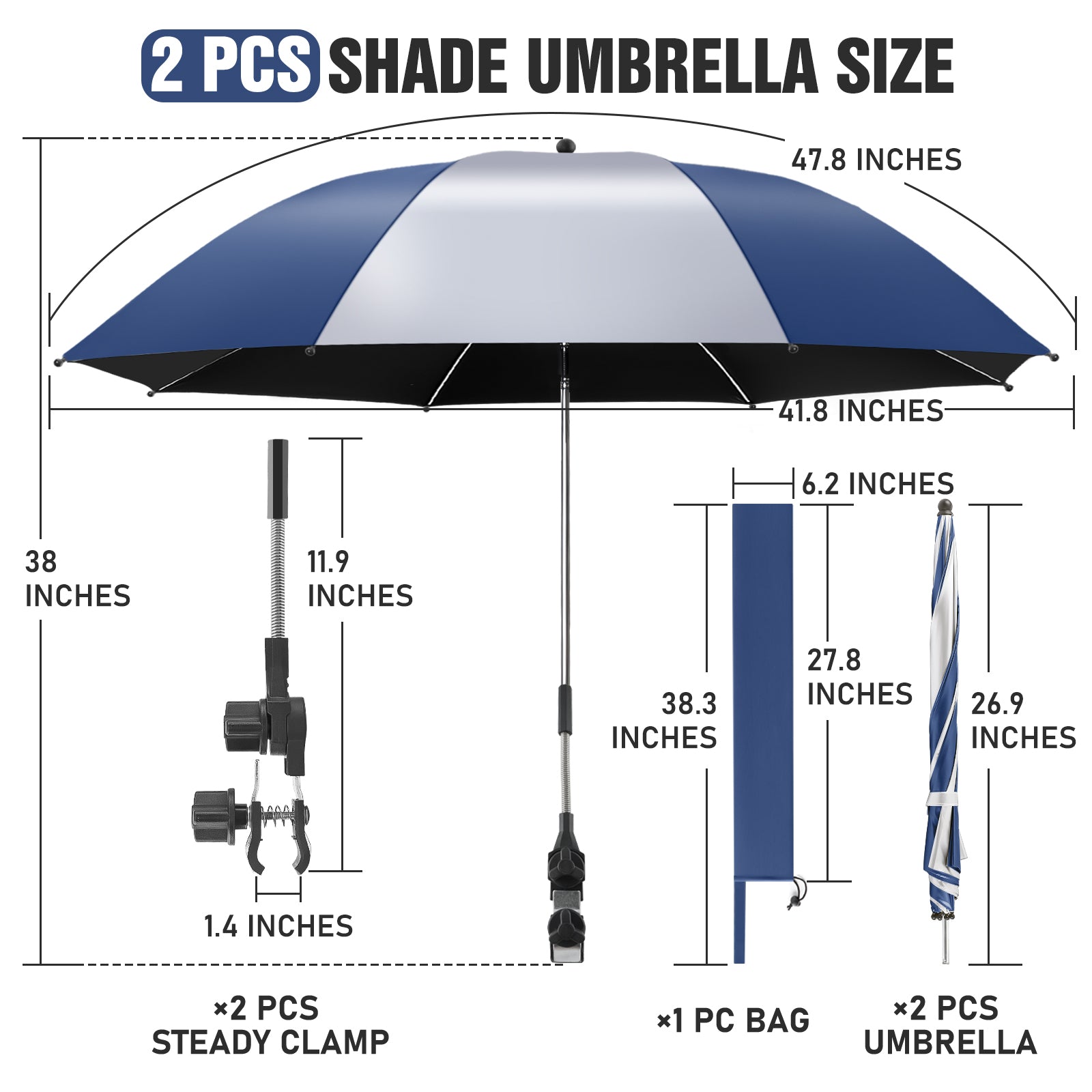 2 PACK Beach Umbrella with Clamp(Ink Blue / Silvery, Chair Not Included)