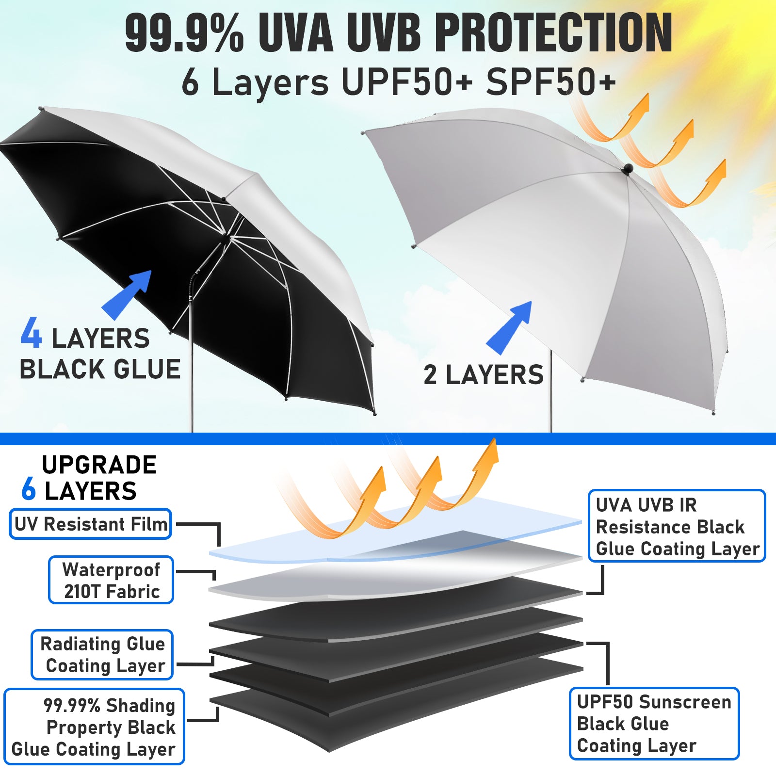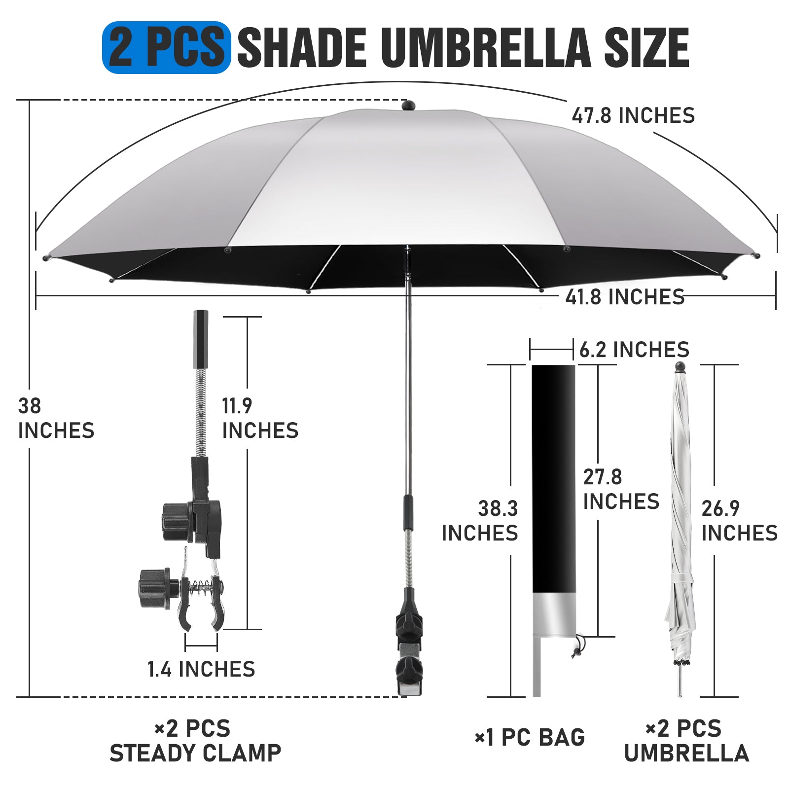 2 PACK Beach Umbrella with Clamp(Silvery, Chair Not Included)